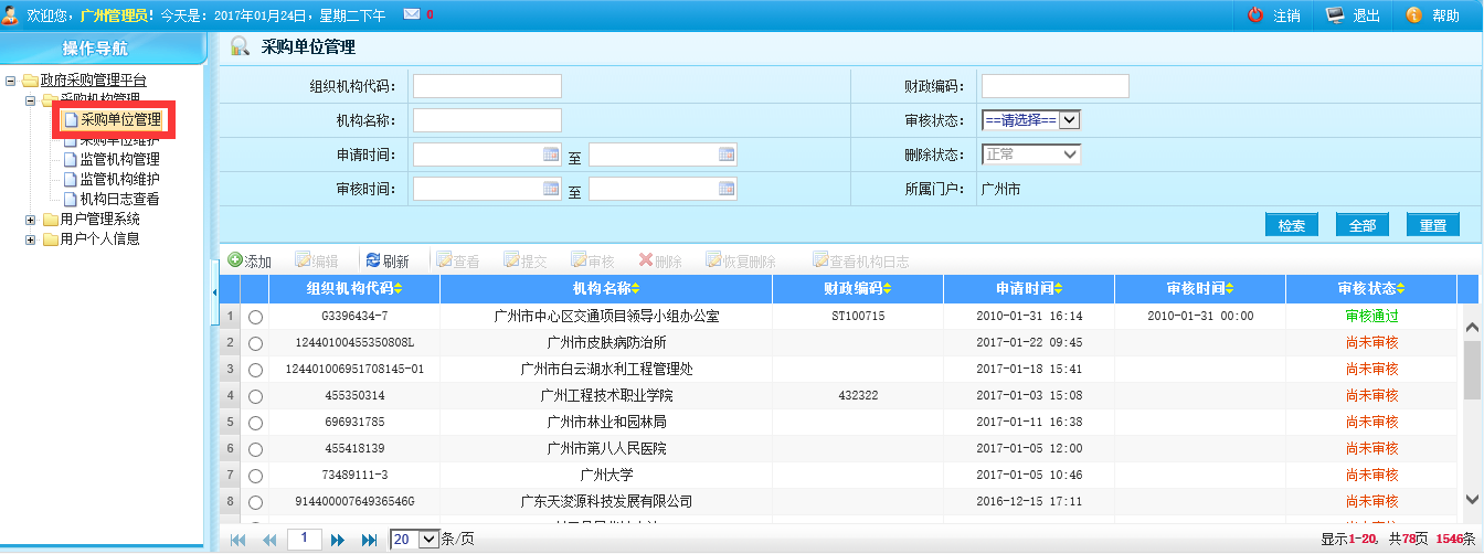廣州市政府采購系統(tǒng)采購人省網(wǎng)注冊及監(jiān)管機構(gòu)審核操作指引